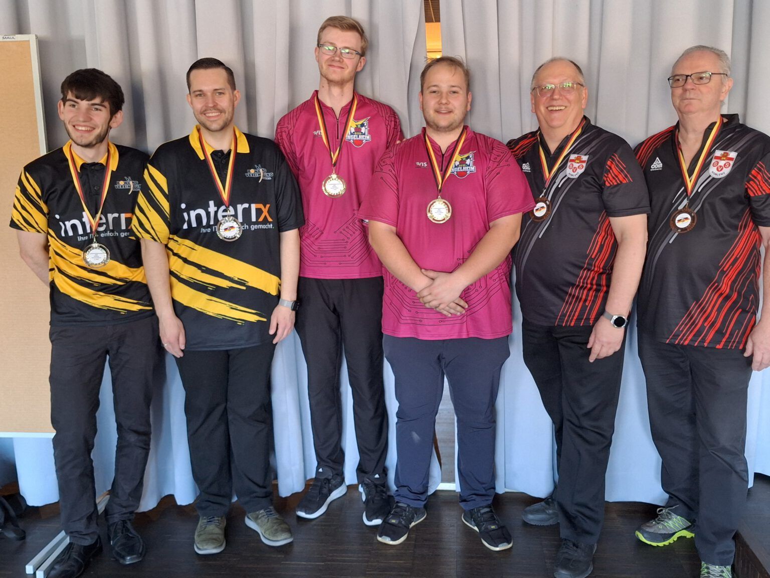 In der vergangenen Woche fanden die deutschen Meisterschaften der Senioren und Versehrten im Hamburg statt. Uwe Tscharke trat als frisch gebackener WM-Qualifikant in der Gruppe der Senioren B an. Mit einem 5. Platz nach den beiden Vorrunde (insgeamt 12 Spiele und 2.381 Pins) setzte er sich in den folgenden kleinen Finals deutlich gegen seine jeweilgen Gegner durch. Im Finale reichte dann ein Schnitt auf zwei Spiele von "nur" 227 für den Titel. Das rein Koblenzer Trio - bestehend aus Uwe Tscharke, Klaus Lischka und Rory Smith - holte dann einige Tage später noch einen hervorragenden 3 Platz in der Wertung "Senioren B". Zusätzlich spielte Uwe in der ersten Runde ein "perfektes Spiel" (soweit man lesen konnte, das Einzige im gesamten Turnierverlauf). Glückwunsch zu den Titeln und dem 300er... Die kompletten Ergebnisse findet ihr auf der DBU-Seite .