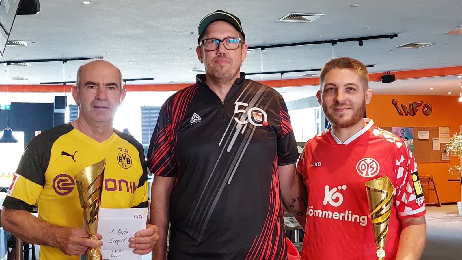 Unser 1. Freundschaftsturnier mit dem BSV Kitzingen fand am 05.07.2025 im Bowling-Center Rottendorf statt. Und es war ein rundum gelungenes Turnier mit lieben Freunden auf einer tollen Bowlinganlage. Es wurde viel gelacht und einige neue Bekanntschaften geschlossen. Sportlich konnten die Einzelwertungen durch unsere Koblenzer Freunde gewonnen werden: die Siegerin bei den Damen war Heike mit 1019 Pin und den Sieg bei den Herren holte sich Enis mit 1075 in den 5 Spielen - beide Ergebnisse inklusive Handicap. Insgesamt waren 27 Spielerinnen und Spieler am Start. Jeweils 13 aus beiden Vereinen gingen in die Gesamtwertung ein. Und diese ging dann denkbar knapp an uns. Wir hatten zum Schluss mit 12515 Pin einen Vorsprung von 8 Pin gegenüber unseren Freunden (12507 Pin). Somit bleibt der Pokal erst mal in Kitzinge. Danach ging es noch nach Kitzingen in das Restaurant Akropolis. Dort ließen wir den Abend bei gutem Essen und dem ein oder anderen Ouzo ausklingen. Die Gespräche dort waren auch sehr heiter und es wurden einige Anekdoten ausgetauscht. Am Ende des Tages waren sich alle einige, dass solch schöne Treffen regelmäßig stattfinden sollen.